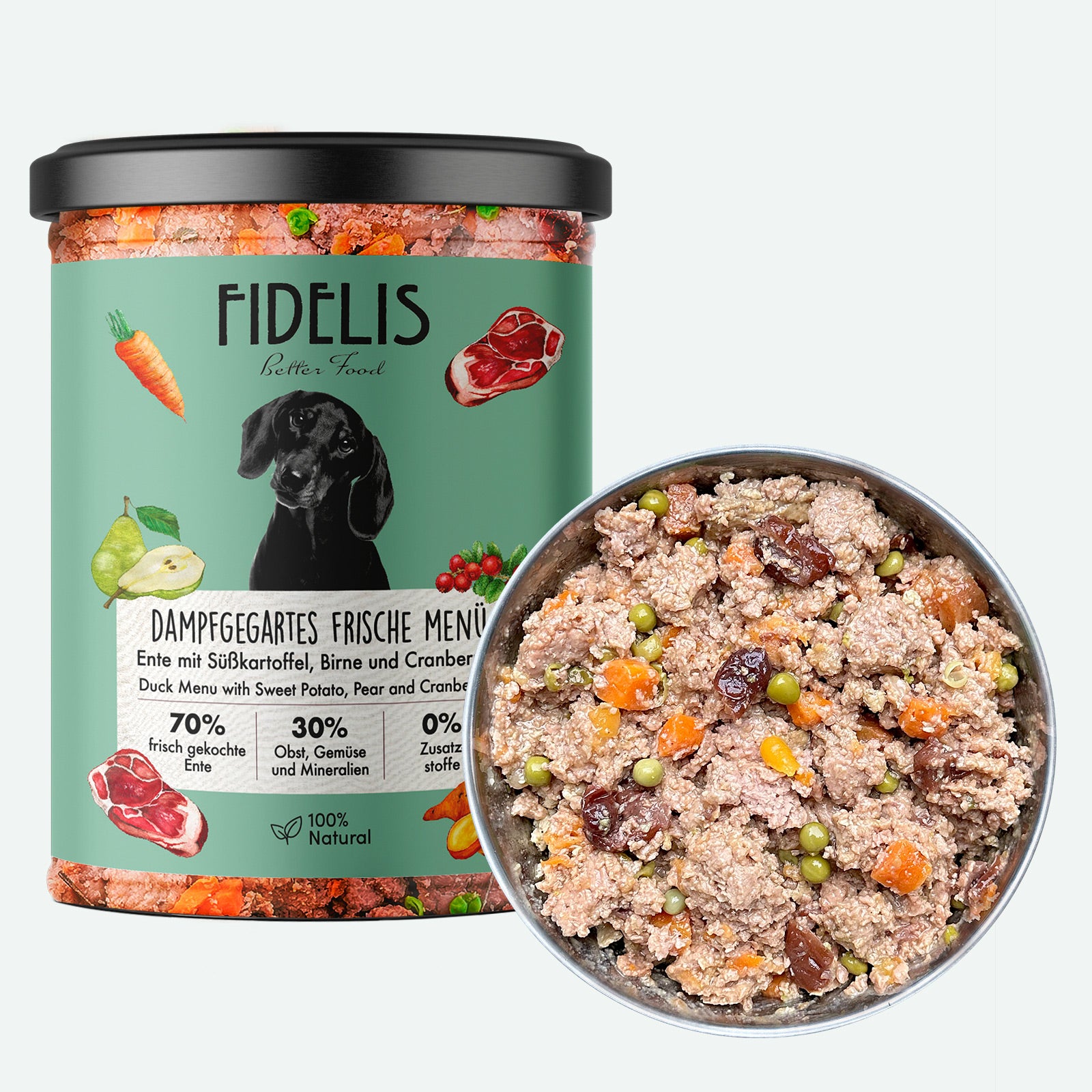 Dla wszystkich, którzy nie mają możliwości chłodzenia, nasze Świeże Menu dostępne są teraz także w słoikach. Świeże Menu w słoikach składają się z tych samych wysokiej jakości i świeżych składników jak nasze głęboko mrożone Świeże Menu: czyste mięśnie mięsa oraz zdrowe podroby, świeże warzywa i owoce, wyselekcjonowane oleje i zioła.